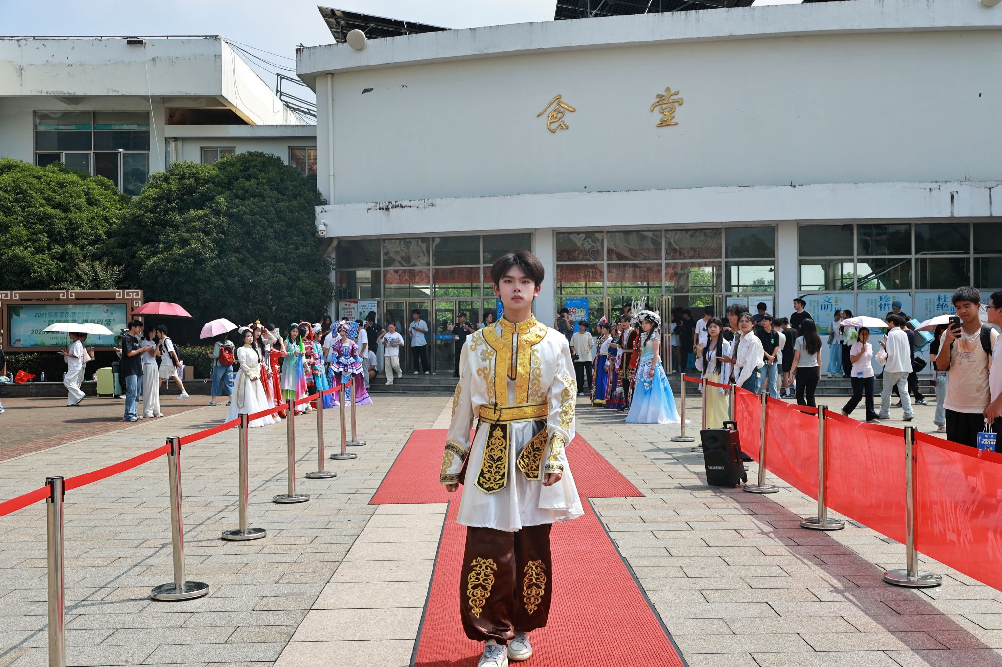 中场时段,周俊豪同学的歌曲表演嗓音清亮、情感充沛,为上下半场走秀搭建了完美的情绪桥梁。活动尾声,242工程造价专业张佳乐同学的民族歌曲旋律悠扬、唱腔醇厚,歌声中满含对民族文化的热爱与对民族团结的祝福。