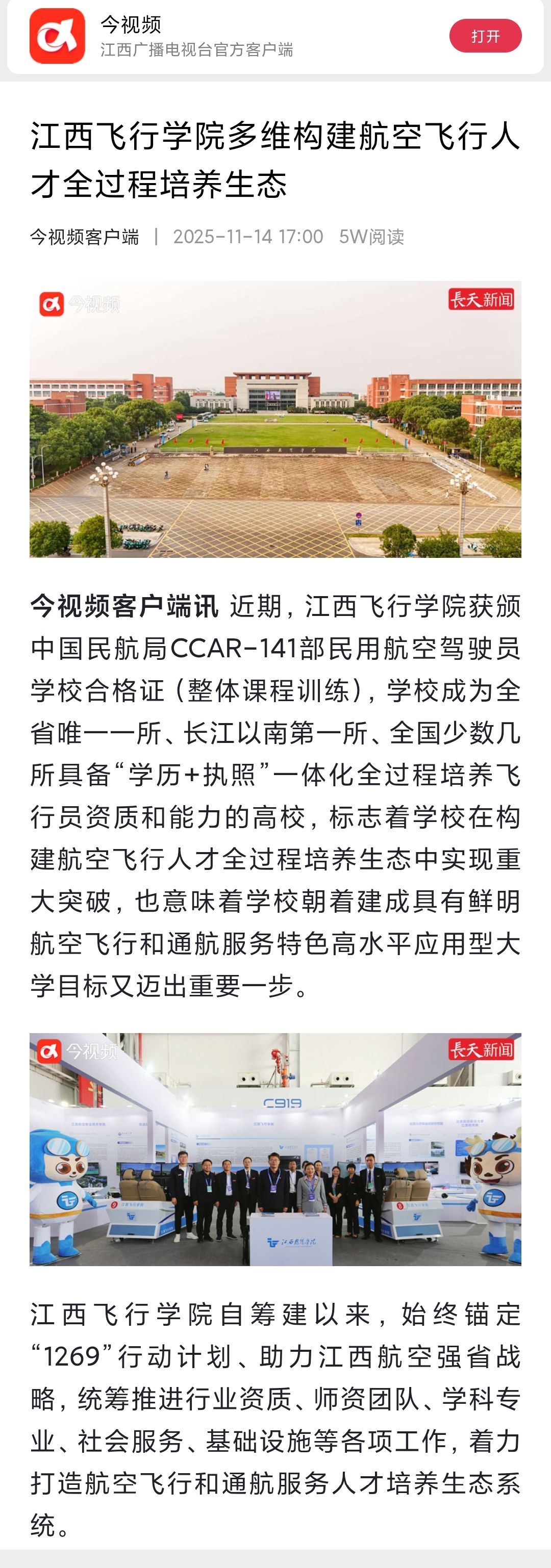 近日,今视频报道,江西飞行学院多维构建航空飞行人才全过程培养生态详情如下: