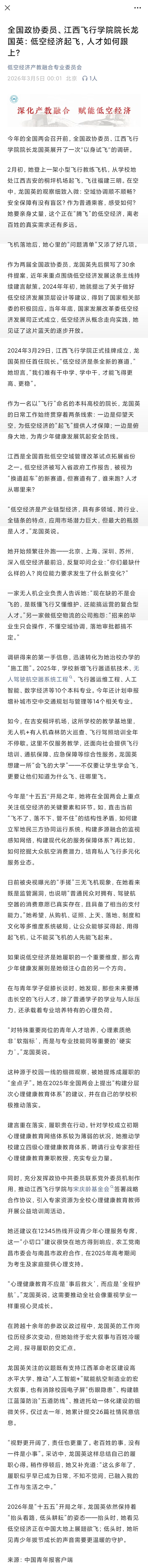 低空经济产教融合专业委员微信公众号: 全国政协委员、江西飞行学院院长龙国英:低空经济起飞,人才如何跟上?