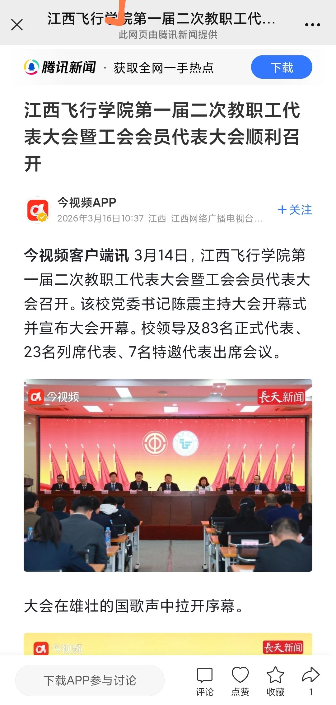 腾讯网:江西飞行学院第一届二次教职工代表大会暨工会会员代表大会顺利召开